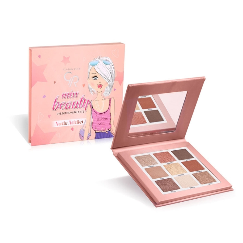 پالت سایه چشم Nude Addict (نود ادیکت) گلدن رز شامل 9 سایه چشم در طیف رنگهای Nude (ملایم) است و برای یک آرایش ملایم و روزانه گزینه بسیار عالی محسوب میشود. رنگ بندی این پالت واقعا عالی بوده و در اولین نگاه چشمها را به خودش جذب میکند.