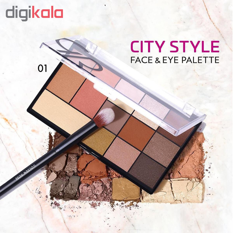 پالت چشم و صورت سیتی استایل ""گلدن رز، محصولی جدید و فوق العاده از برند محبوب گلدن رز می باشد که خیال شما را برای یک آرایش کامل چشم و صورت راحت می کند.سیتی استایل یک پالت همه کاره برای داشتن آرایشی جذاب و کارآمد است.این پالت شامل 9 رنگ سایه چشم مات و شاین دار، 1 رنگ هایلایتر، 1 رنگ برنزر و 1 رنگ رژگونه با پیگمنت رنگ فوق العاده می باشد که خود پالت دارای 2 شماره است. ماندگاری و جلوه ابریشمی این پالت شما را به وجد خواهد آورد.